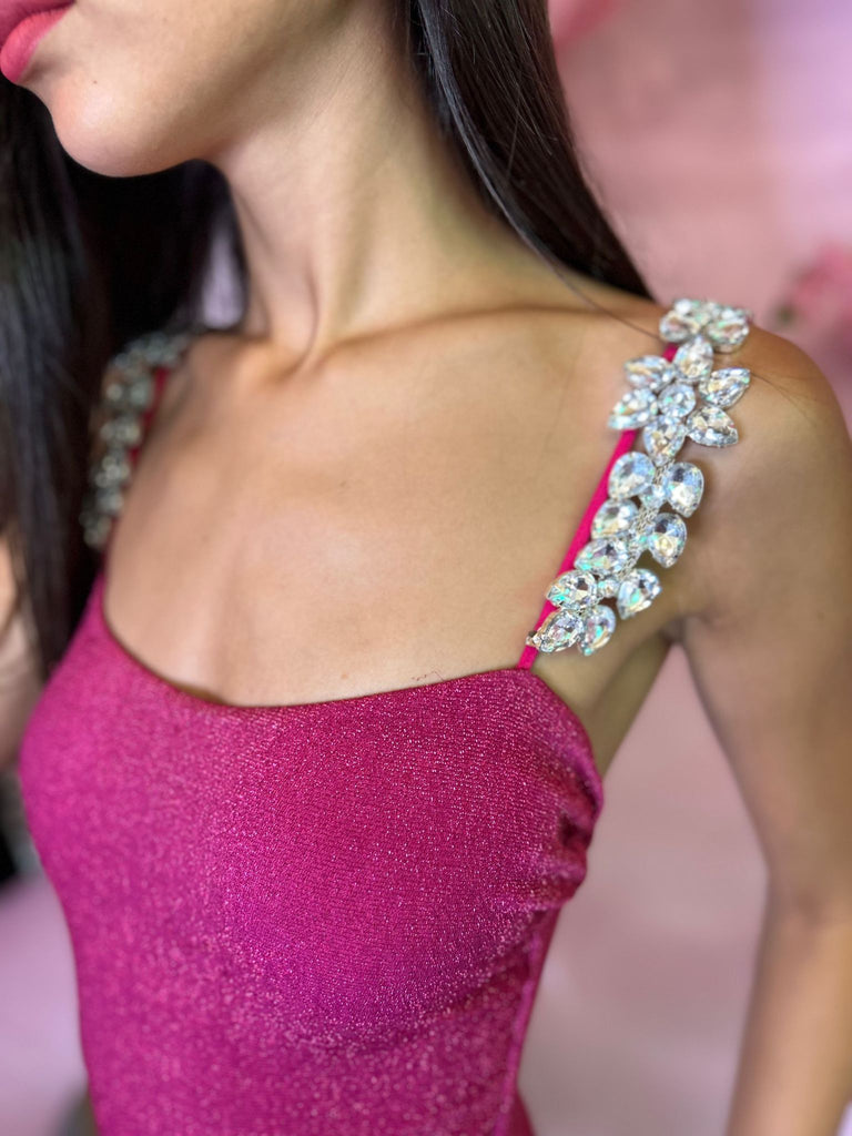 Costume intero in tessuto lurex elasticizzato con applicazione di fiori di strass rimovibili