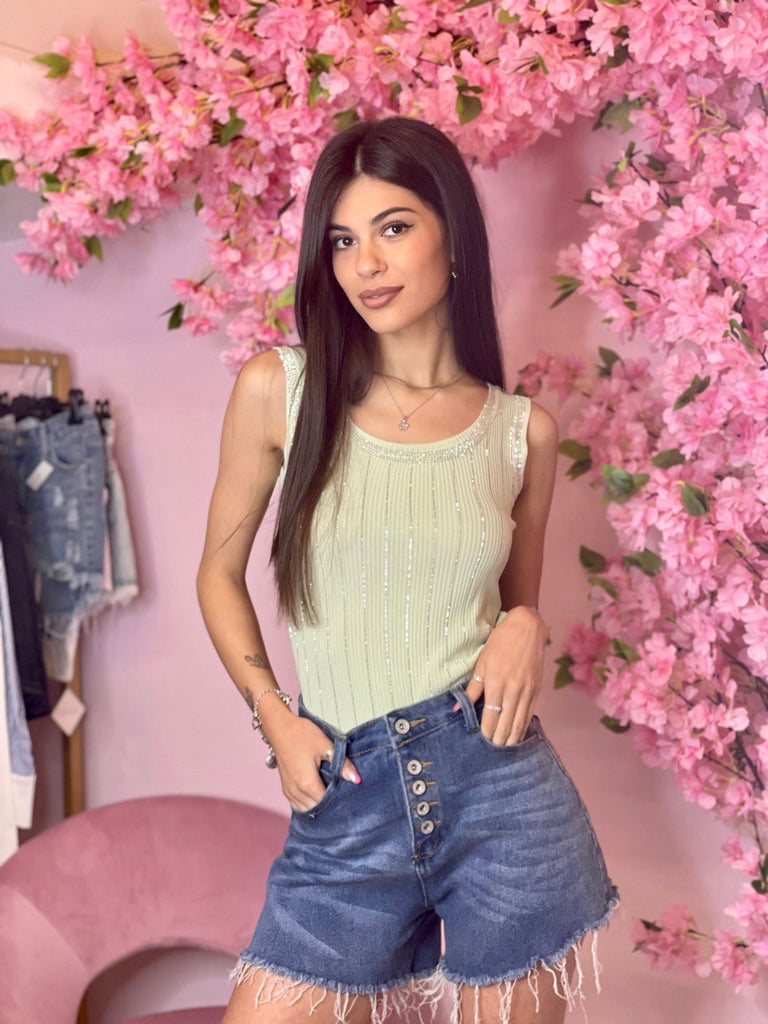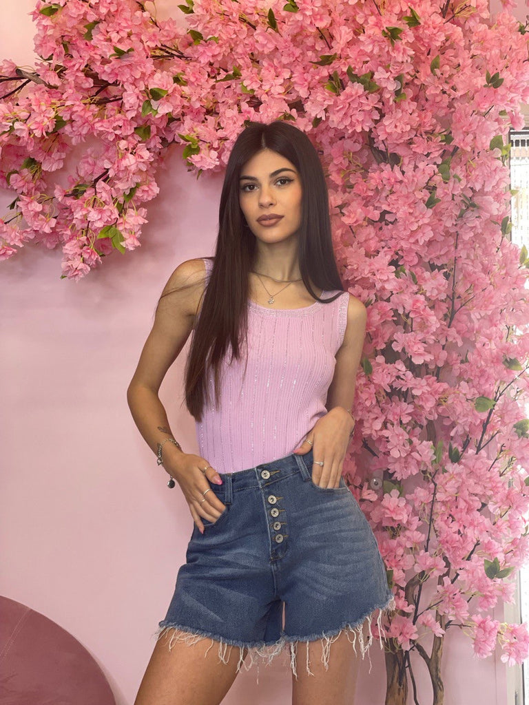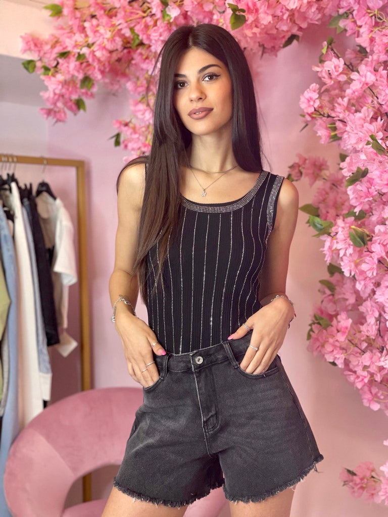 Canotta di cotone elasticizzato a costine gessato in lurex