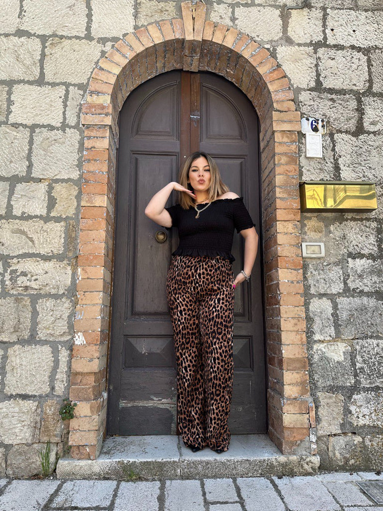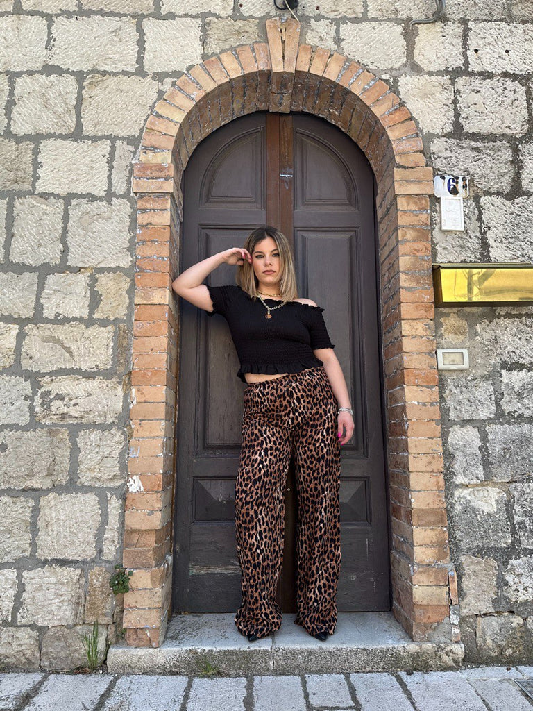 Pantaloni palazzo con elastico in vita. Taglia unica: veste da una S ad una L.